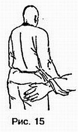 Прием заключается в похлопывании ладонью по толстым мышцам или по достаточно обширным участкам кожи (рис. 15), например, нижняя часть живота, спина, ягодицы. Сильное похлопывание вызывает «ослабление», слабое — «пополнение», среднее — «нейтральную» реакцию.