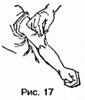 Прием заключается в захвате мышцы или связки большим, средним и указательным пальцами и подергивании ее вверх (рис. 17). Особенность этого приема состоит в следующем: сначала пальцы касаются кожи на расстоянии друг от друга, а затем сжимаются в щепоть. В зависимости от возраста и состояния пациента «дергание» может осуществляться с различными по интенсивности усилиями и высотой поднятия мышцы, что определяет его «пополняющее», «ослабляющее» или «нейтральное» воздействие.
