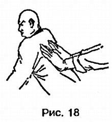 Прием заключается в скатывающем движении (скатывание бумаги в трубочку) одной или двумя руками по поверхности кожи или какому-либо участку тела (рис. 18). Выполнение приема с большим усилием и в высоком темпе определяет его «ослабляющее» действие, с малым усилием и медленно — «пополняющее», со средним усилием и в среднем темпе — «нейтральное».