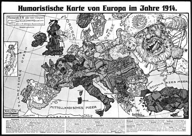 Немецкая сатирическая карта Европы времен Первой Мировой войны