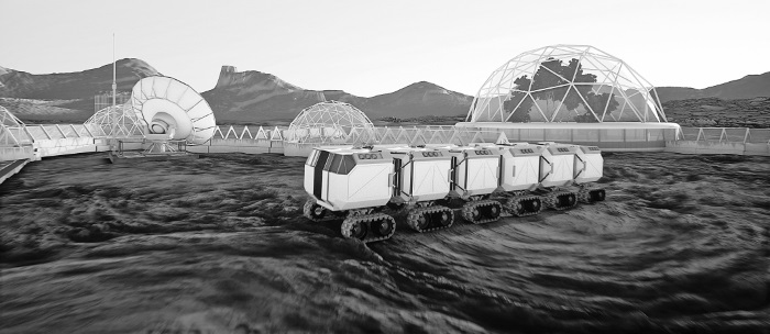 Как же будут выглядеть марсианские обитаемые базы? Согласно плану, внутри 100-километровой зоны будут находиться области для добычи и переработки ресурсов, научных экспериментов и генерации энергии. Помимо солнечных батарей речь идет о специальных ядерных установках. Более того, на территории базы необходимо предусмотреть несколько площадок для посадки пилотируемых аппаратов, а также транспортных кораблей.