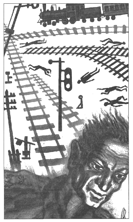 Экономя силы, не торопясь, с полуминутными паузами-привалами, он миновал вагоны с девятого по первый; восьмой прошел беспрепятственно: кодовые замки пришли в негодность, а лазеры и пулеметы, вероятно, приняли его за своего. Затем сосредоточился, готовясь продемонстрировать обезьянью ловкость. Отворил дверь, выглянул наружу, вдохнул осеннюю сырость пополам с гарью. Рельсы бежали вперед, уводя не то в марево, не то в зарево; поезд выставился платформой, подающей тела — вроде той, что была оборудована в ритуальном вагоне. Литвиненко чуть смежил веки и сделал первый шаг.
