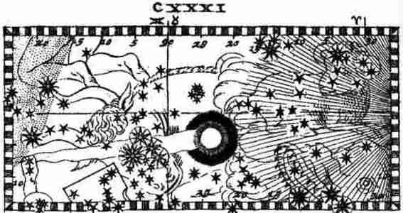 Раскрываем книгу Бахараха «Астрономия» якобы 1545 года. В ней есть интересный рисунок КОМЕТЫ В ВИДЕ ГИГАНТСКОГО КРУГЛОГО ЛИЦА, КИПЯЩЕГО ПАРОМ И ОГНЕМ, ОКРУЖЕННОГО ЗВЕЗДАМИ, СГОРАЮЩИМИ В ПЛАМЕНИ, рис. 147.