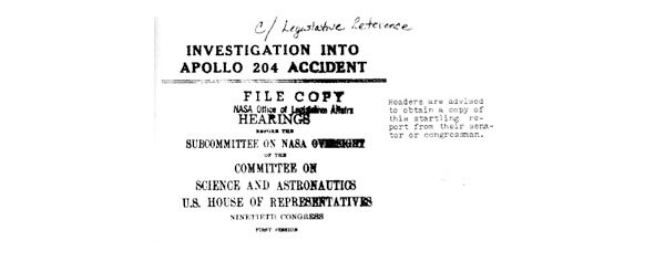 Большинство историков эпохи Аполлона согласится, что пожар в командной капсуле, в которой погибли Гас Гриссом, Эд Уайт и Роджер Чаффи был результатом неправильного управления и халатности со стороны НАСА. Хотя было более 20000 случаев отказов оборудования, произошедших до этой неожиданной катастрофы. До того, как случилось это происшествие, с гибелью в огне трех мужчин, которое, наконец, сфокусировала внимание мировой общественности на недостатках, ошибках и даже преступном поведение руководства НАСА.