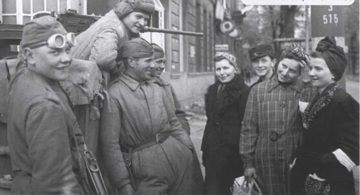 Советские солдаты беседуют с жительницами Берлина (1945 год).