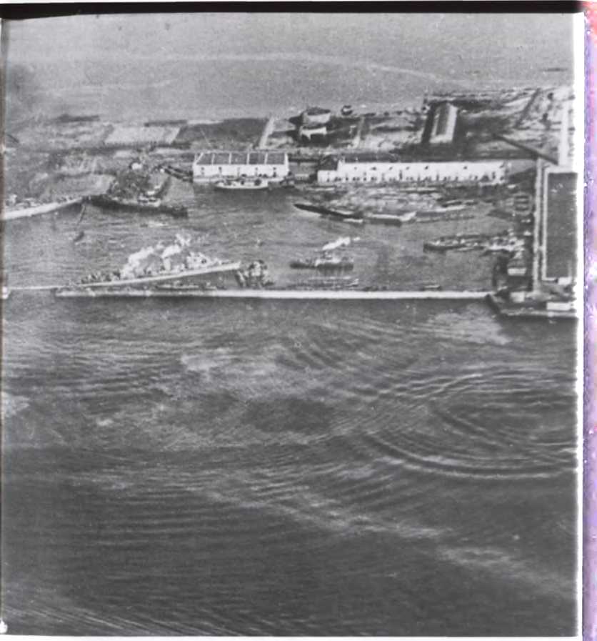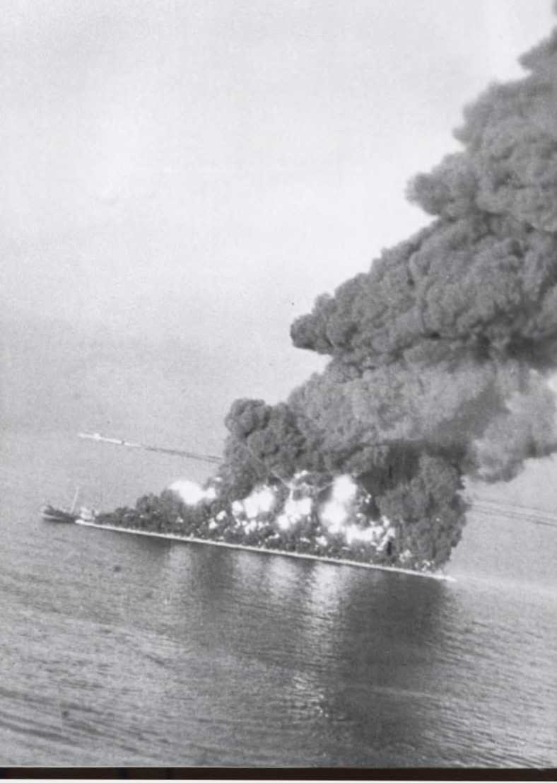 Немецкий танкер, подорванный авиацией Балтийского флота в Балтийском море (апрель 1943 года). Снимок сделан советским летчиком.