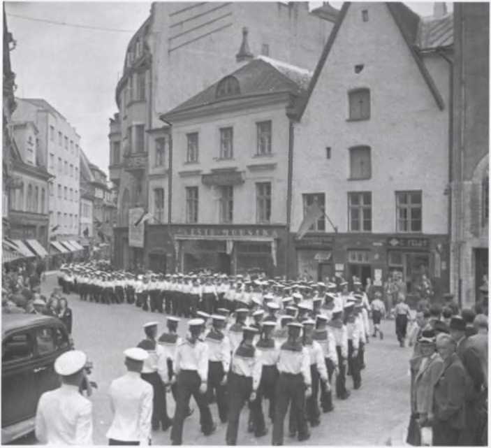 Советские моряки проходят по одной из улиц в центре Таллина (Эстония, 1940 г.). Летом 1940 года Сталин присоединил к Советскому Союзу Эстонию, Латвию и Литву, создал на их территории Прибалтийский особый военный округ и основные силы этого округа сосредоточил на границе с Восточной Пруссией. С точки зрения подготовки страны к обороне в случае возможного нападения Германии такие действия — огромная ошибка.