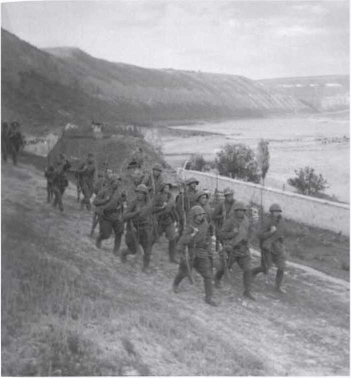 Части Красной Армии вступают на территорию Бессарабии; на заднем плане — переправа советских войск через Днестр, разделяющий СССР и Румынию (28 июня 1940 года). 9 июня 1940 года в СССР был создан Южный фронт под командованием генерала армии Жукова, в состав которого вошли 3 армии — в общей сложности 460 тысяч бойцов и командиров, 12 тысяч орудий, 3 тысячи танков и 2 тысячи самолетов. Сосредоточив такую мощь на границе Румынии, Сталин потребовал передачи Бессарабии и Северной Буковины Советскому Союзу. Южный фронт Жукова был готов сокрушить Румынию, но за несколько часов до начала операции король Румынии принял ультиматум Сталина, румынские войска оставили спорные территории, а советские войска заняли их за 6 дней, с 28 июня по 3 июля 1940 года.