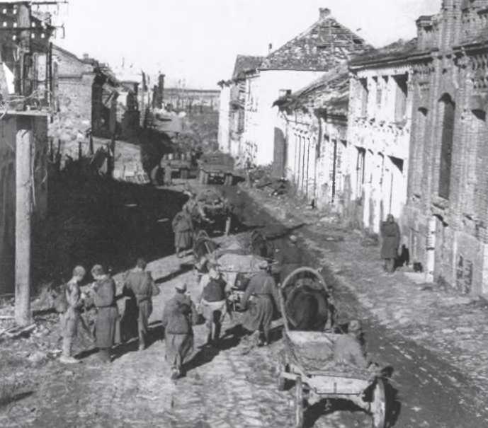 Советский обоз на одной из улиц разрушенной Сычёвки (1943 г.).