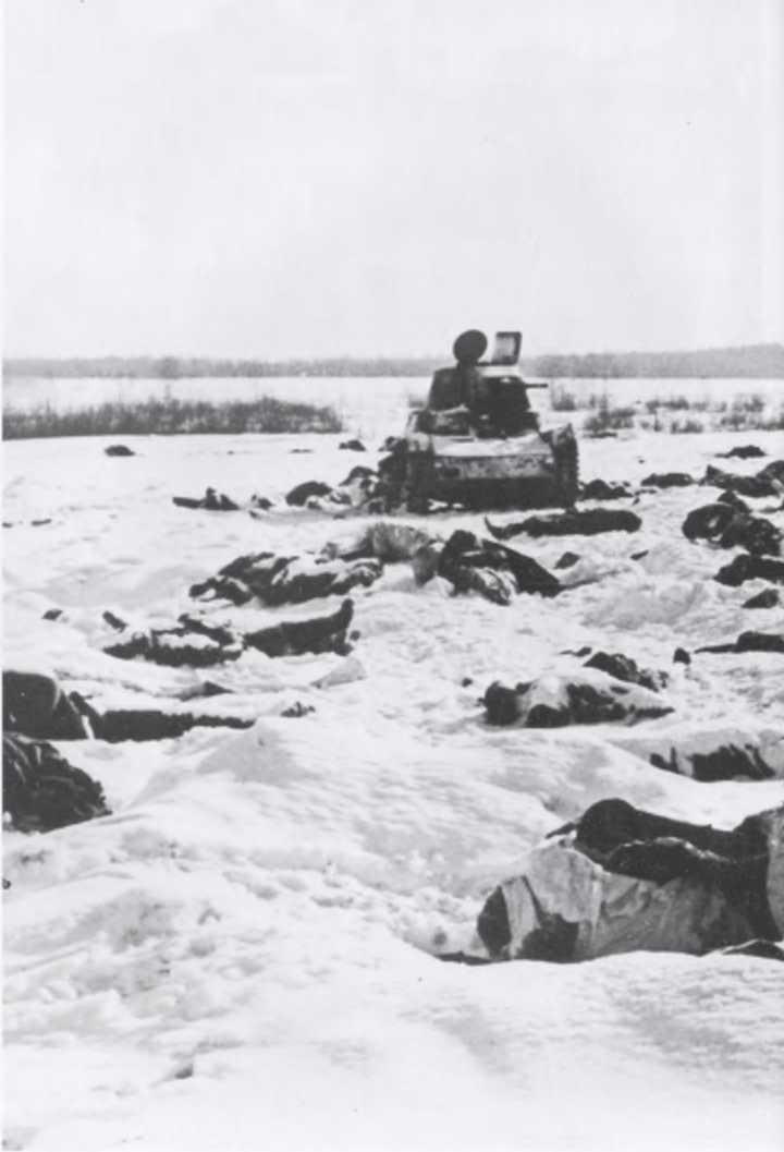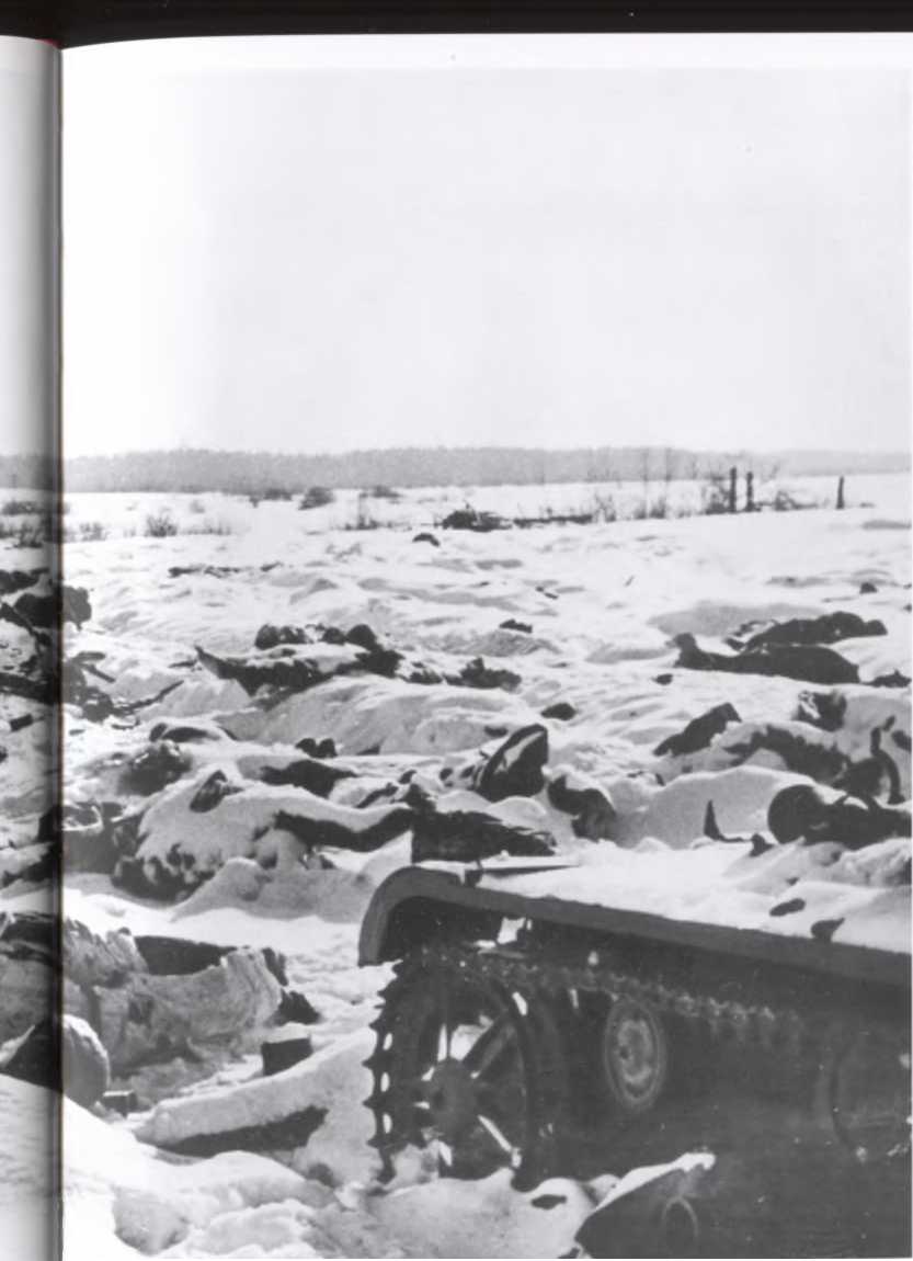 и тела погибших красноармейцев. Снимок сделан немецким фотографом в феврале-марте 1942 года.