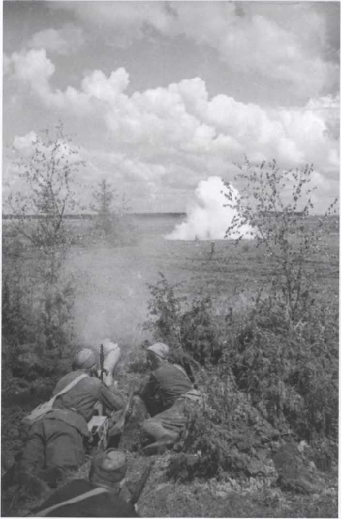Советские пулеметчики отбивают атаку гитлеровцев (Ржевский район Калининской области, 1941 год).