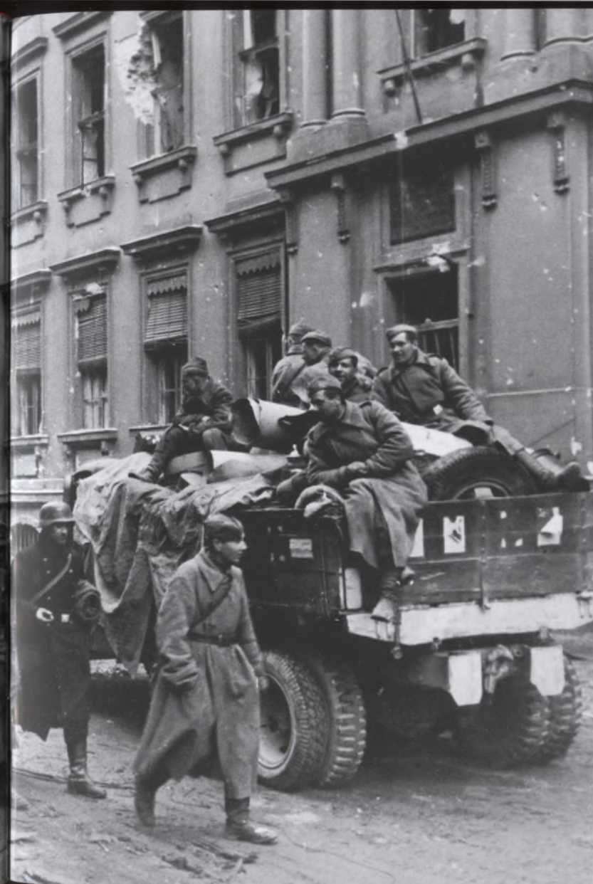 Бойцы советской трофейной команды везут собранное трофейное оружие и имущество (Берлин, 1945 год).