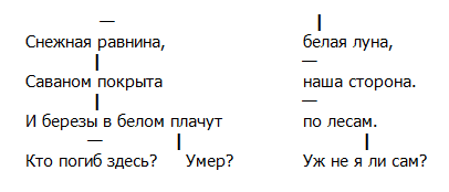 «и березы в белом плачут» — череда вертикалей;