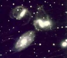 Методы наблюдения, которыми астрономы могли пользоваться раньше, не позволяли обнаруживать последствия сильных соударений галактик. Только теперь, в 1998 году, два английских астронома – Нейл Трентхэм и Барам Мобасхер с помощью телескопа, установленного на Гавайях (диаметр его зеркала 2,2 метра), открыли одинокую дугу, состоящую из газа и звезд. Она протянулась на 260 тысяч световых лет и находится в группе галактик, носящих название Кома.