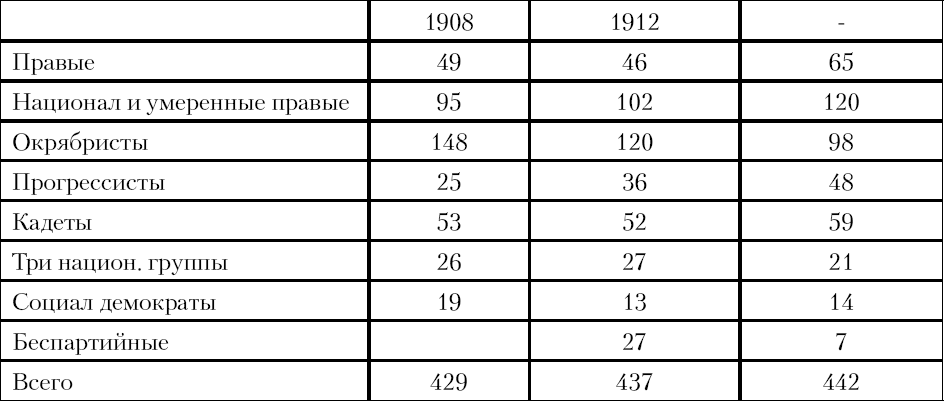 Надежды, что новая Государственная Дума разрешит накопившиеся в обществе противоречия, не оправдались. Итоги выборов в 1912 году в IV Государственную Думу не изменили ее качественный состав.[11]