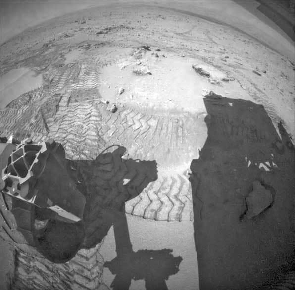 Тени на поверхности Марса от марсохода «Curiosity» и неопознанного объекта