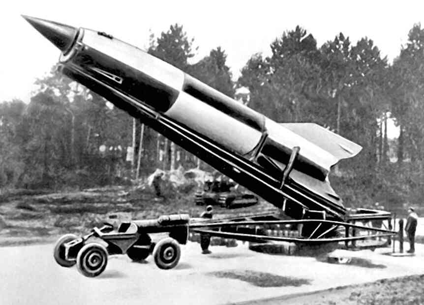 Немецкая ракета «Фау-2». Фотография 1944 г. И ныне все баллистическое оружие «передовых стран мира» является слегка улучшенным образчиком именно этой ракеты. Научные высоты, заданные учеными Третьего рейха, не смог превзойти еще никто