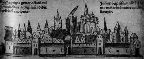 1) Есть ли подлинные средневековые рисунки, изображающие Кёльнский собор, или то здание, которое было на его месте ранее XVII века?