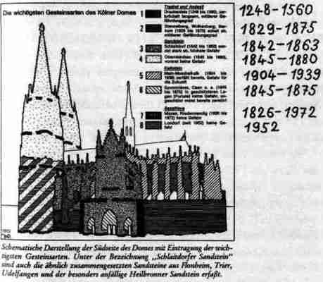 Рис. 49. Хронология кладки Кёльнского собора. Взято из технической брошюры «Gefahr f?r den K?lner Dom. Bild-Dokumentation zur Verwitterung. Auszug aus dem K?lner Dom- Lese- and Bilderbuch. Professor Dr. Arnold Wolff». Мы получили эту брошюру в самом Кёльнском соборе.