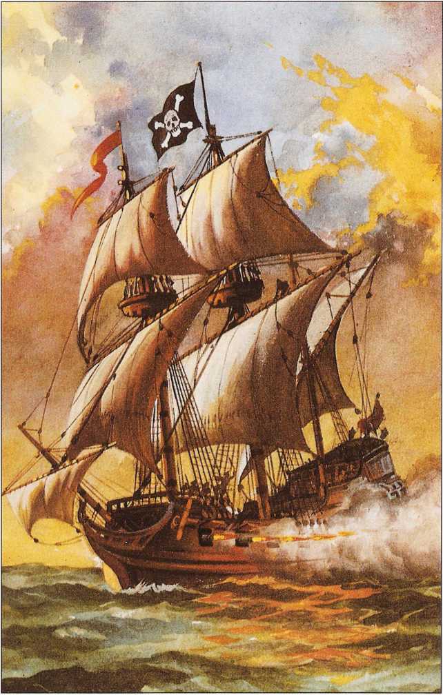 «Индийская королева» была небольшим кораблем, водоизмещением всего в двести пятьдесят тонн. В те времена в этом не было ничего необычного. Не только пиратские корабли, но и торговые суда часто бывали водоизмещением всего в сто тонн и даже меньше. Имеются свидетельства о пиратах, плававших на небольших суденышках, которые скорее были похожи на большие лодки для плавания по спокойным рекам. А между тем пираты на этих, так называемых, кораблях пересекали моря, выдерживали штормы, нападали на суда, которые были в десять раз больше, и одерживали победы. Команды торговых судов либо теряли всякую волю к сопротивлению, завидев зловещий пиратский флаг, либо просто не хотели упустить шанс, чтобы самим присоединиться к пиратам.