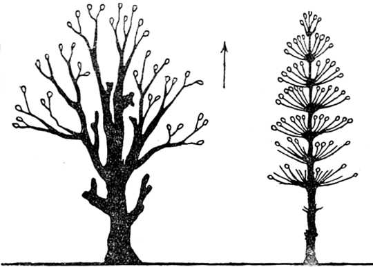 Какой смысл реального дерева? Оно возносит крону к небесам и там, на вершине, – его самые поздние побеги? Нет, множество ветвей расходятся в разные стороны, а иные направлены не вверх, а вниз. Кроме стремления вверх есть мощная система корней. Плоды находятся не на вершине, а рассыпаны по всей кроне.