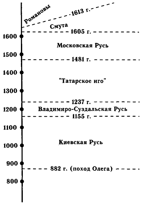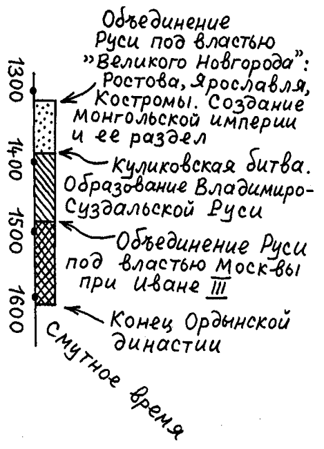 Рис. 1(1). Общая схема «учебника по Русской Истории» в традиционных датировках.