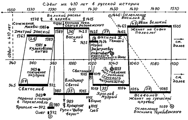 Рис. 2(2). Хронологический сдвиг на 410 лет в русской истории. Продолжение.