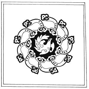 Трехногая птица — священная птица древнейших китайских мифов, живущая на Солнце. Окруженная облаками, означавшими небо, она часто использовалась как символ Солнца. Вокруг облаков изображались девять жуй. Жуй в те времена являлся символом небесного императора, его силы. Это слово обычно использовалось для пожелания долголетия. «Девять небесных жуй» имеют такой смысл: «Небо дарует счастье и долголетие».