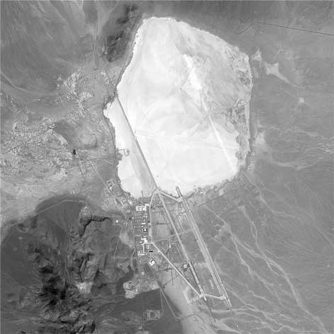 Зона 51 – военная база, удаленное подразделение военно-воздушной базы Эдвардс. Расположена в США на юге штата Невада, в 133 км. к северо-западу от Лас-Вегаса, на южном берегу сухого соленого озера Грум-Лейк. Снимок со спутника