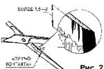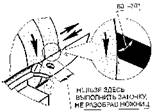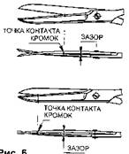 Если шарнир в порядке, проверьте наличие зазора между режущими половинками. При отсутствии на каком- то участке зазора подогните здесь половинки навстречу одна другой (рис. 6). Для этого используйте тиски, установив расстояние между их губками на 1-2 мм больше толщины режущих половинок.