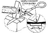 Если этого окажется недостаточно, воспользуйтесь наковальней и двумя пластинками толщиной 5-10 мм, чтобы они образовали заниженный участок шириной 25-30 мм (рис. 8).