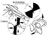 Если нож при резании раздвигает части материала в стороны, то кромки ножниц сдвигают эти части одну относительно другой (рис. 1). Усилие резания ножницами зависит от радиуса скругления кромок и от того, насколько близко одна к другой расположены плоскости движения этих кромок.