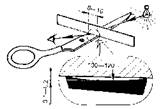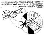 После такого прохода остается гладкая вогнутая поверхность правильной формы, без уступов, с ровным рисунком микронеровностей. Радиус кривизны можно контролировать металлической линейкой, расположившись у окна либо возле другого источника света. Радиусу в 100-120 мм при ширине лезвия 8-10 мм соответствует зазор между линейкой и «дном» желоба примерно в 0,1-0,2 мм (рис. 25).