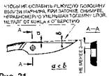 При заточке коротких ножниц с длиной режущих половинок 30-40 мм можно обойтись только абразивным бруском, а иногда и плоским, обязательно новым, напильником с мелкой насечкой. Для фиксации ножей в нужном положении воспользуйтесь тисками (рис. 15).