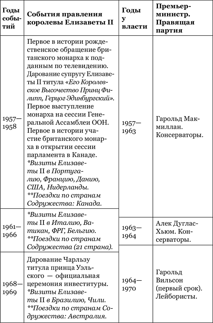 Периодизация правления королевы Елизаветы II в сопоставлении с периодизацией правления премьер-министров Великобритании