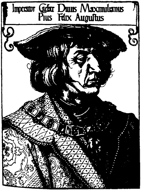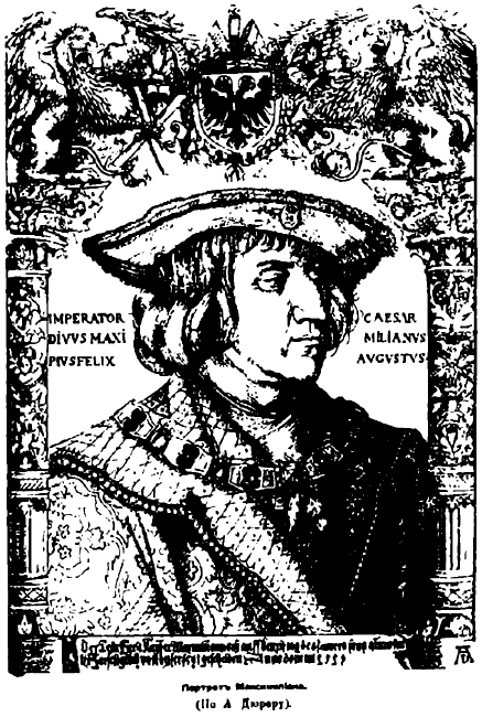 Рис 113. Портрет императора Максимилиана Августа ПИЯ (1440–1519), выполненный Альбрехтом Дюрером. Взято из [1234], гравюра 318.