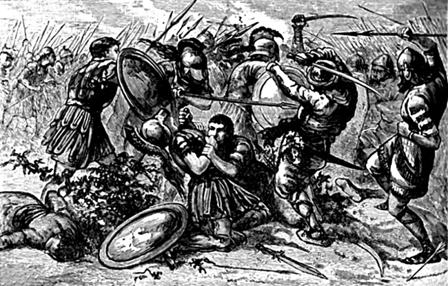 Вдруг около полудня 3 сентября 401 г. до н. э. появился скачущий на коне во весь опор знатный перс Патесий. Он кричал на персидском и греческом языках, что приближается войско царя. Началось замешательство. Куруш сошел с колесницы, надел панцирь, сел на коня и приказал вооружиться и выстроить боевой порядок.