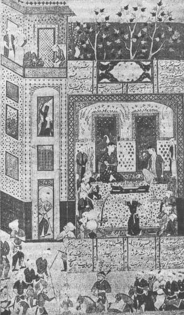 Рис. 5.30. Свадебный пир Сиавуша и Ференгис. С рукописи Государственной публичной библиотеки им. Салтыкова-Щедрина. Взято из [876:2 г], вклейка между с. 192–193.