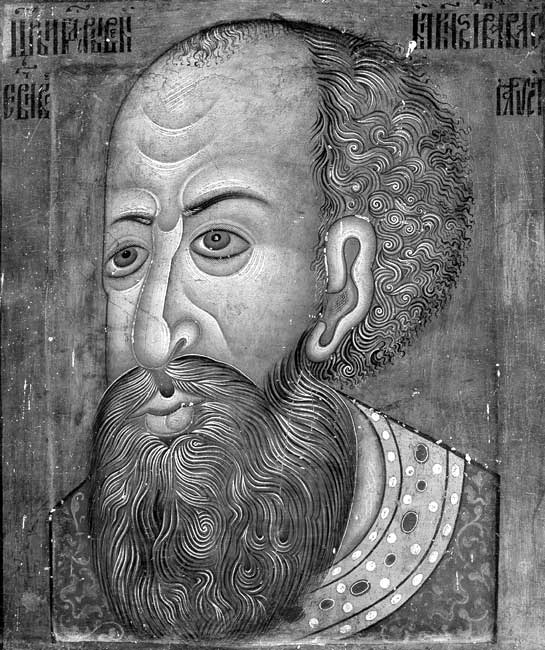 Перед своей болезнью Иван IV стал проявлять необыкновенную набожность. Известно, что он находился в это время под сильным влиянием священника Сильвестра. «На 17-летнего Ивана рассказы и убежденность священника оказывали действие потрясающее. Именно Сильвестр заронил в душу Грозного искру религиозного фанатизма… Приобщение к религии внесло большие перемены в жизнь дворца. Англичан, посещавших страну в то время, поражали многие привычки московского государя… Царь чуждается грубых потех, не очень любит охоту, зато находит удовольствие в богослужениях… В том же году (в 1552 — Авт.) Ивана посетили первые видения» [6, с. 125]. В этой связи Скрынников сообщает, что эти годы являлись «временем исключительного внимания к юродивым. Большим почетом в те годы пользовался в Москве дивный „нагоходец“, зимой и летом ходивший „без телесного одеяния“ — в лохмотьях, с тяжкими веригами на шее. То был Василий Блаженный. Его смерть была отмечена в официальных записях Разрядного приказа. Юродивого похоронили в Троице-Сергиевом монастыре при огромном стечении народа» [6, с. 126]. Самым достоверным И САМЫМ РАННИМ [13, с. 182] из сохранившихся до нашего времени изображений Ивана Грозного считается, так называемый, «копенгагенский портрет». Хранится он в королевском архиве Дании. ЭТОТ ПОРТРЕТ ЯВЛЯЕТСЯ ИКОНОЙ. Он написан на досках яичными красками в чисто иконописной манере. Более того, на этой иконе (как и положено на иконах) изображение помещено в углублении. Края портрета выступают наружу. Это — так называемый ковчег. Отметим, что КОВЧЕГ ДЕЛАЛСЯ ТОЛЬКО НА ИКОНАХ, поскольку имел церковный смысл. НА СВЕТСКИХ ИЗОБРАЖЕНИЯХ КОВЧЕГА НЕ ДЕЛАЛИ. Отметим, что изготовить такой ковчег — сделать углубление в доске и выровнять его поверхность — совсем непросто. Это сильно усложняло процесс изготовления икон. Делалось это в соответствие со специальными церковными требованиями. Это — особенность старых икон (по крайней мере, до XVII века), написанных на досках.