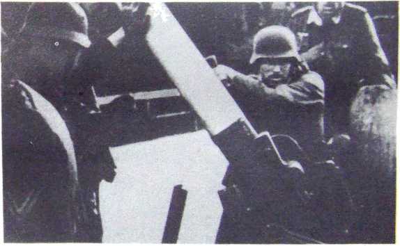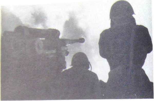 В нелетную погоду зенитчики устанавливали стволы орудий горизонтально и вели огонь по танкам противника.
