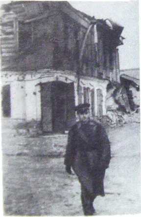 Утро 6 сентября 1941 года. Освобожден город Ельня. Военный корреспондент Евгений Воробьев у здания райкома ВКП(б).