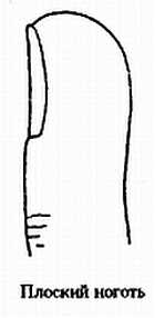 Так, больные хроническим гастритом или диспепсией, большей частью имеют плоские ногти. Люди с плоскими ногтями, хотя и выглядят вполне здоровыми, предрасположены к желудочно-кишечным заболеваниям. Таким людям следует особенно следить за правильностью своего питания, всемерно проявлять умеренность в еде и питье, чтобы избежать функциональных расстройств желудка и кишечника вследствие чрезмерной нагрузки на них.