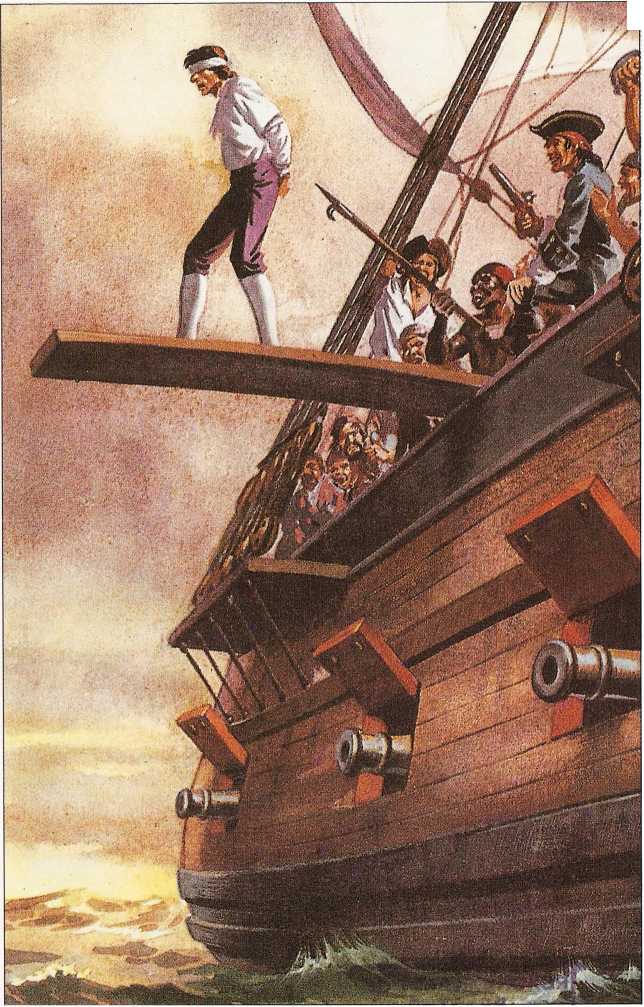 Пленник идет по доске с завязанными глазами навстречу своей гибели