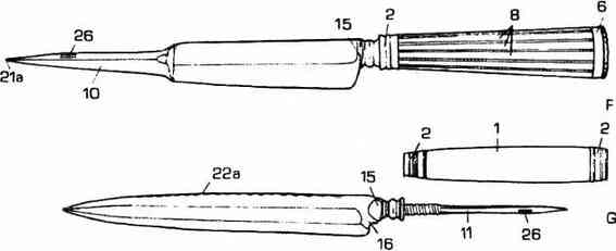 Но просто Меккой ножей, созданных исключительно для преступных целей, само собой, оставался юг Италии. фроме уже упомянутых сфарцилий и зомпафуоссо в ходу тут были и пружинные ножи, выбрасывавшие лезвие при нажатии на кнопку. В Риме их называли молетта, в Неаполе — молеттоне а в апулийском Таранто — мулеттоне. В Апулии для них существовало и другое название — «valestra», на жаргоне самострел или арбалет, что подчёркивало скорость выбрасывания лезвия. На Сицилии для кинжалов использовалось специфическое жаргонное название «crucifissu» — «крест», или «распятие». Очевидно, на подобные благочестивые мысли наводило перекрестье кинжала[493].