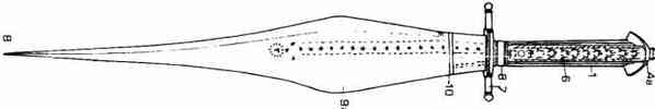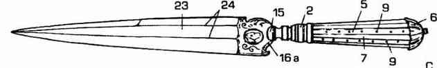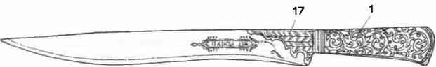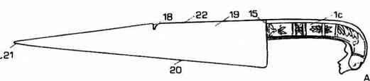 Рис. 68. Рисунок ножа, которым было нанесено ранение в драке в 1749 г. Общая длина 220 мм. (© G. С. Baronti).