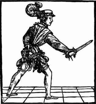 Эти древние пиррические танцы можно было увидеть и в Италии начала XVI века, когда они исполнялись для увеселения герцогини Феррары, Модены и Реджио, печально известной Лукреции Борджиа. Одни танцоры были вооружены большими ножами, другие булавами или двуручными мечами, и кроме этого у всех были кинжалы. Поклонившись, они начинали танцевать под звуки музыки, потом разделялись на две группы, и тут же вступали в бой. Каждый удар наносился в такт с музыкой. Затем те, кто был вооружён булавами, отбрасывали их в сторону, доставали мечи, и начинали наносить друг другу колющие удары — «colpi di punto», не переставая при этом танцевать. По условному сигналу они бросали мечи, и набрасывались друг на друга с кинжалами, По другому сигналу, половина танцоров бросалась на землю, изображая раненых, в то время как их «противники» стояли над ними с кинжалами в руках в роли победителей[309].