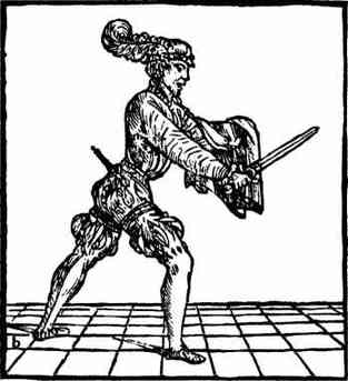 Рис. 56. Стойка с плащом и кинжалом. Opera Nova dell'Arte delle Armi, Акилле Мароццо. 1536 г