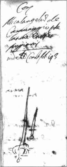 Рис. 1. Фрагмент полицейского протокола о задержании Караваджо с изображением конфискованного оружия, 1605 г.