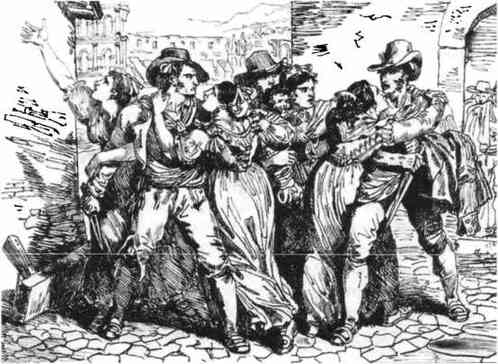 Жители Рима славились своей вспыльчивостью и привычкой внезапно хвататься за оружие. Согласно свидетельствам путешественников, каждый римский мужчина носил за поясом нож, а волосы каждой женщины держала заколка-стилет. Джиджи Дзанаццо писал, что для римлян в те дни нож был всем — целой жизнью. Его хранили в кармане рядом с чётками, время от времени проверяли, на месте ли он, и гладили как сокровище. Для них нож был другом, который всегда рядом — и днём, и ночью: ночью под подушкой, а днём в кармане. Время от времени его доставали, открывали, полировали, натачивали и даже целовали[268]. В своём исследовании культуры ножевых поединков Италии Даниэле Боски отметил, что местные девушки не спешили выйти замуж за человека, не доказавшего храбрость в дуэли на ножах[269].