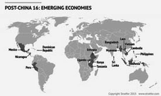 «Шестнадцать пост-китайских стран», предназначенных США для переноса производственных мощностей из КНР. Источник: сайт американского разведывательного агентства Stratfor.